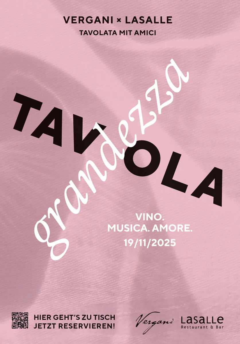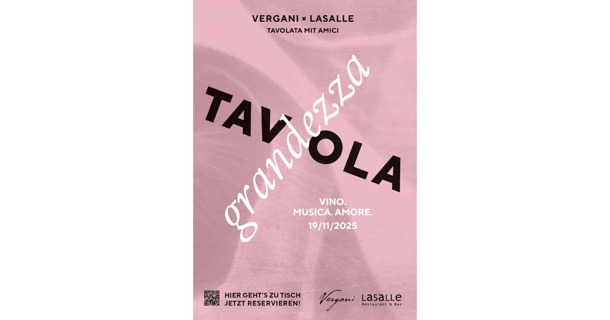 Nach vielen Jahren der Verbundenheit gehen das LaSalle und das Familienunternehmen Vergani nun einen Schritt weiter. Gemeinsam feiern wir diese Partnerschaft mit einer ganz besonderen Begegnung: der Tavola Grandezza - Kerzenlicht, Menschen, Geschichten, Musik und Weine, die verbinden.